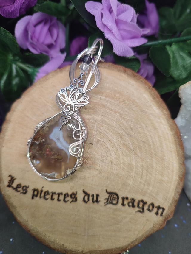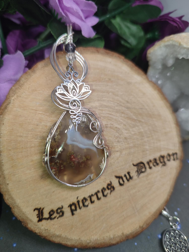 Nyssara est un talisman façonné à la main en agate mousse d’Indonésie, symbole de renaissance, sérénité et harmonie intérieure. Son motif, le lotus, incarne la pureté et l’élévation spirituelle, guidant son porteur vers l’équilibre et la lumière après l’ombre.