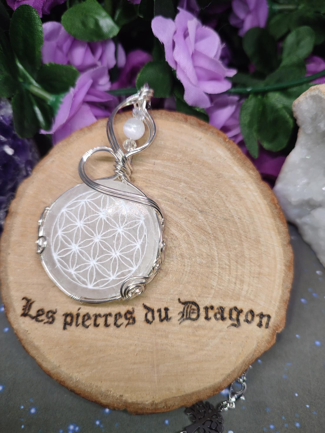 Façonné à la main, il unit la sélénite, pierre de lumière et de purification, à la Fleur de Vie, symbole universel d’harmonie et de création.